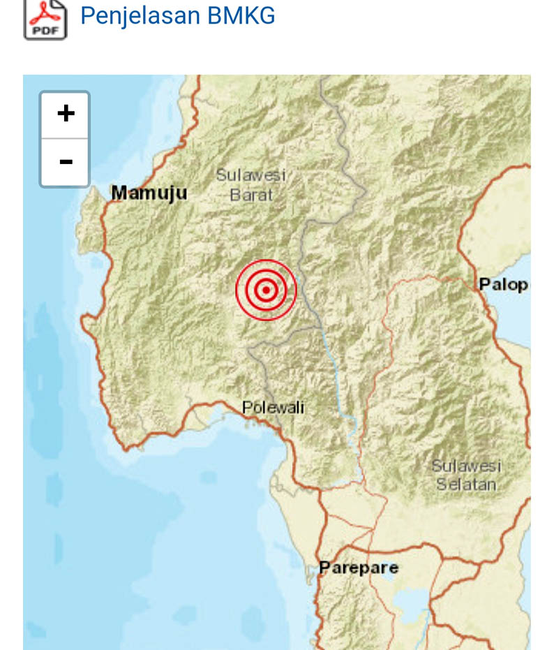 ekspossulbar.com, MAMASA – Gempa dengan kekuatan magnitudo 4,6 kembali dirasakan masyarakat di Kabupaten Mamasa. Gempa tersebut membuat warga berhamburan keluar rumah, Jumat (14/12/2018) dini hari.