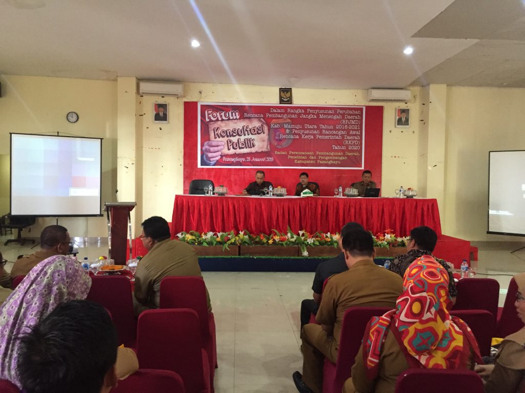 ekspossulbar.com,PASANGKAYU— Rencana Pembangunan Jangka Menengah Daerah (RPJMD) 2016-2021 Pemkab Pasangkayu, diubah. Itu terungkap saat acara konsultasi publik penyusunan Perubahan RPJMD Pemkab Pasangkayu 2016-2021 dan penyusunan rancangan awal Rencana Kerja Pemerintah Daerah (RKPD) 2020 yang di selenggarakan oleh Badan Perencanaan Pembangunan Daerah dan Litbang (Bappeda Litbang) Pasangkayu, Senin 28 Januari.