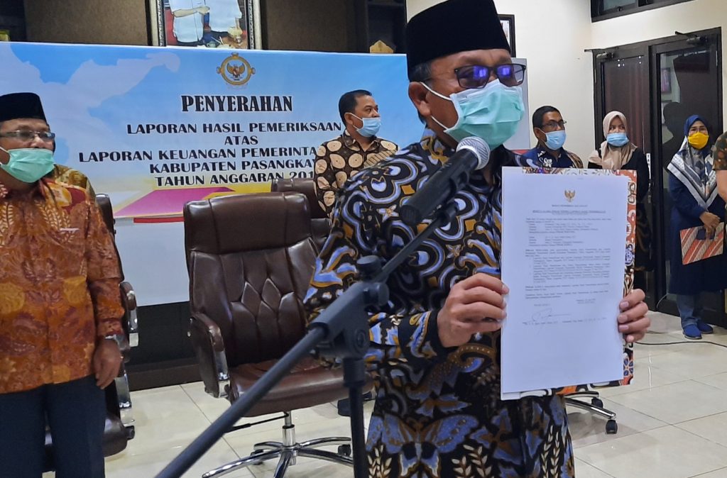 Itu terungkap saat penyerahan LHP LKPD tahun 2019 dari BPK RI kepada Pemkab Pasangkayu via video confrence, Jumat 26 Juni. Diserahkan oleh Kepala BPK Perwakilan Sulbar Muhamad Toha Arafat, dan diterima oleh Bupati Agus Ambo Djiwa.