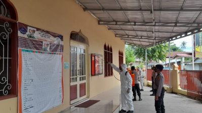 ” Kami mengimbau kepada masyarakat agar selalu menaati protokol kesehatan demi untuk memutus penyebaran covid-19 agar wilayah dimana kita berada selalu dalam keadaan sehat dan nyaman yang tentunya harus didukung oleh ikhtiar kita semua” imbuh Kasat Sampata AKP Mukhtar Mahdi, yang memimpin penyemprotan disinfektan, Senin 28 Juni.