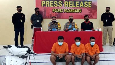 Pasangkayu, ekspossulbar.co.id – Sat Reskrim Polres Pasangkayu meringkus pencurian dengan kekerasan (Curas). Hal itu diungkapkan melalui Press Release Kasus Curas di Ruangan Media Center Polres Pasangkayu, Jumat (16/7/2021) Siang.