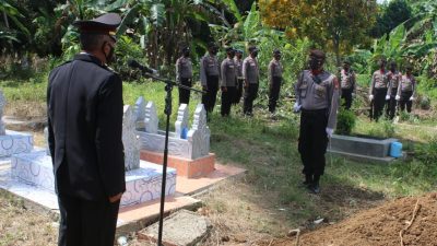 PASANGKAYU,ekspossulbar.co.id –Kepala Bagian Sumber Daya Manusia (Kabag SDM) Polres Pasangkayu AKP Sujarwo, memimpin upacara pemakaman jenasah Briptu Halpi, di pemakaman umum Dusun Maradde Desa Desa Makmur Jaya Kecamatan Tikke Raya Pasangkayu, Selasa 10 Agustus.