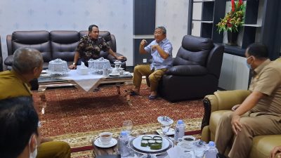 Pertemuan bupati dan rombongan gubernur nampak berlangsung hangat. Ditemani suguhan kue-kue tradisional dan secangkir kopi panas.
