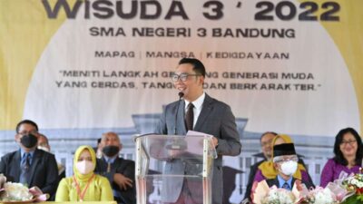 “Atas nama orang tua (murid), kami menghaturkan terima kasih kepada guru-guru yang telah mendidik anak-anak kami selama tiga tahun di kampus istimewa ini. Guru adalah pengganti orang tua di rumah, kami pengganti guru di sekolah,” kata Kang Emil.