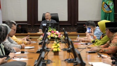 KOTA BANDUNG – Sekretaris Daerah Provinsi Jawa Barat Setiawan Wangsaatmaja membuka acara Pembinaan dan Penyelenggaraan Kabupaten/Kota Sehat di Jawa Barat, di Gedung Sate, Kota Bandung, Kamis (6/4/2023).