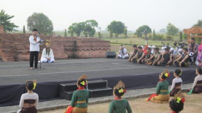 “Ini tanah milik desa, dikasihkan (dulu) kepada kami,” ujar Uu Ruzhanul Ulum pada peringatan Hari Purbakala Nasional ke-110 Tingkat Provinsi Jawa Barat, di Candi Blandongan, Kompleks Candi Batu Jaya, Desa Segaran, Kabupaten Karawang, Rabu (14/6/2023).