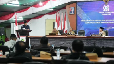 Karenanya, Fraksi-Fraksi DPRD Sulbar menerima Jawaban Pj Gubernur Sulawesi Barat Bahtiar Baharuddin terhadap Pemandangan Umum Fraksi-Fraksi DPRD atas Nota Keuangan Ranperda APBD Perubahan 2024, melalui sidang Paripurna berlangsung di DPRD Sulbar, Selasa 27 Agustus 2024.