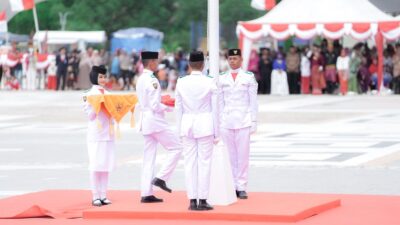 EKSPOSSULBAR.CO.ID, MAMUJU — Pemerintah Provinsi Sulawesi Barat (Sulbar) menggelar upacara pengibaran bendera Merah Putih dalam rangka memperingati Hari Ulang Tahun (HUT) ke-80 Kemerdekaan Republik Indonesia (RI) di Anjungan Pantai Manakarra, Mamuju, Minggu (17/8/2025).
