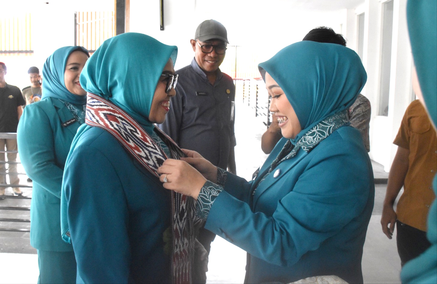 EKSPOSSULBAR.CO.ID, MAMUJU – Ketua Tim Penggerak Pemberdayaan dan Kesejahteraan Keluarga (TP PKK) Provinsi Sulawesi Barat, Harsinah Suhardi, resmi melantik dr. Sulfia Suhardi sebagai Ketua TP PKK, Ketua Pembina Posyandu, sekaligus Ketua Dekranasda Kabupaten Mamuju masa jabatan 2025–2030. Prosesi pelantikan berlangsung di Aula Lantai 3 Kantor Bupati Mamuju, Jumat 22 Agustus 2025.