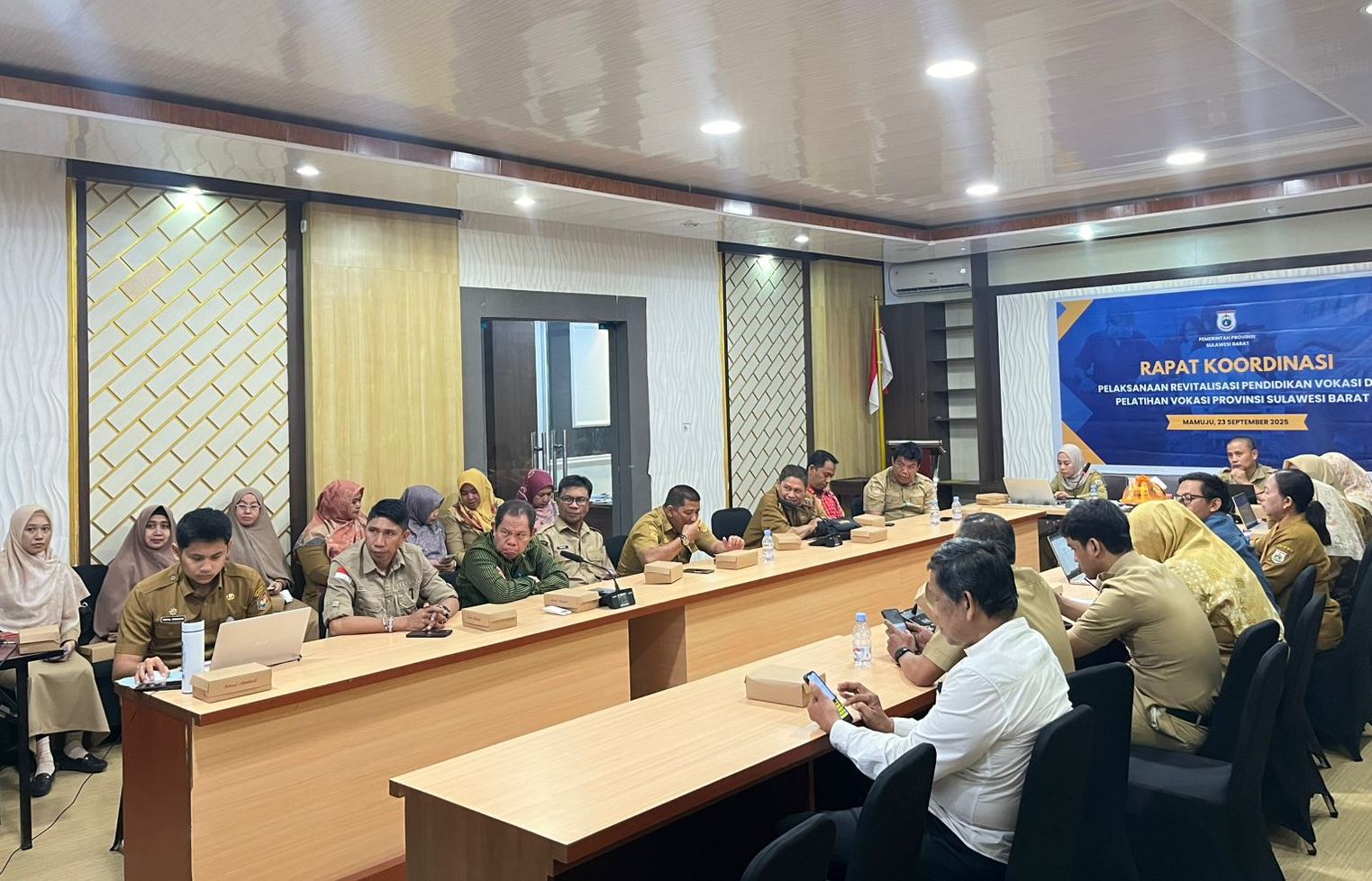 EKSPOSSULBAR.CO.ID, Mamuju — Badan Perencanaan Pembangunan, Riset dan Inovasi Daerah (Bapperida) Provinsi Sulawesi Barat menggelar Rapat Koordinasi Pelaksanaan Revitalisasi Pendidikan Vokasi dan Pelatihan Vokasi di Ruang RPJMD Kantor Bapperida Sulbar, Selasa (23/9/2025).