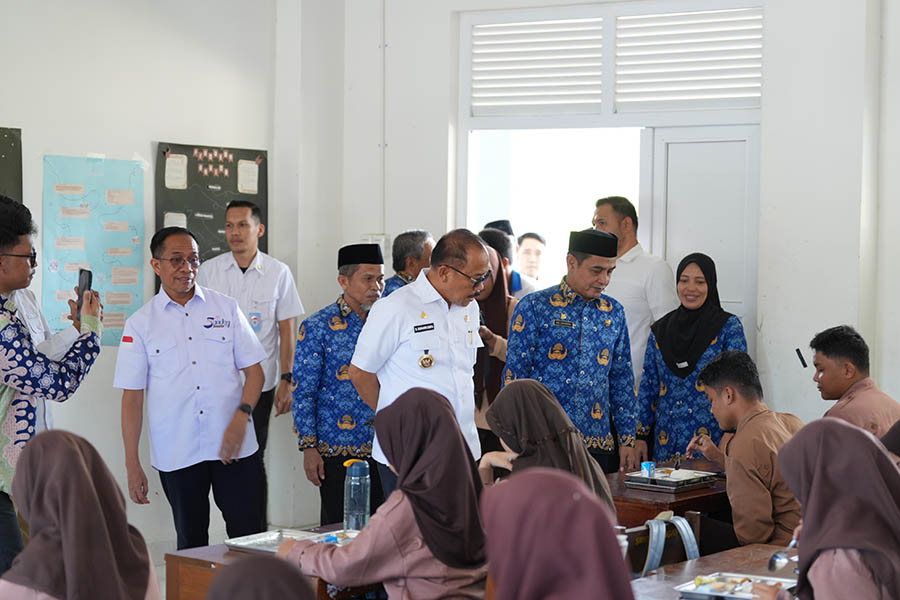 Sebelum menuju sekolah, Gubernur Suhardi Duka bersama rombongan terlebih dahulu menyaksikan proses pengemasan makanan bergizi gratis yang akan didistribusikan ke siswa. Hal ini dilakukan untuk memastikan kualitas, kebersihan, serta standar gizi makanan benar-benar terjaga sejak dari proses awal.