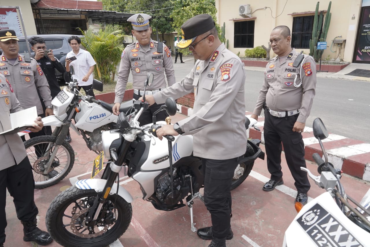 Pengecekan ini meliputi kendaraan roda dua maupun roda empat, termasuk mobil patroli, kendaraan operasional dan sepeda motor Bhabinkamtibmas, guna memastikan armada tersebut selalu dalam kondisi prima dan siap operasional 24 jam.