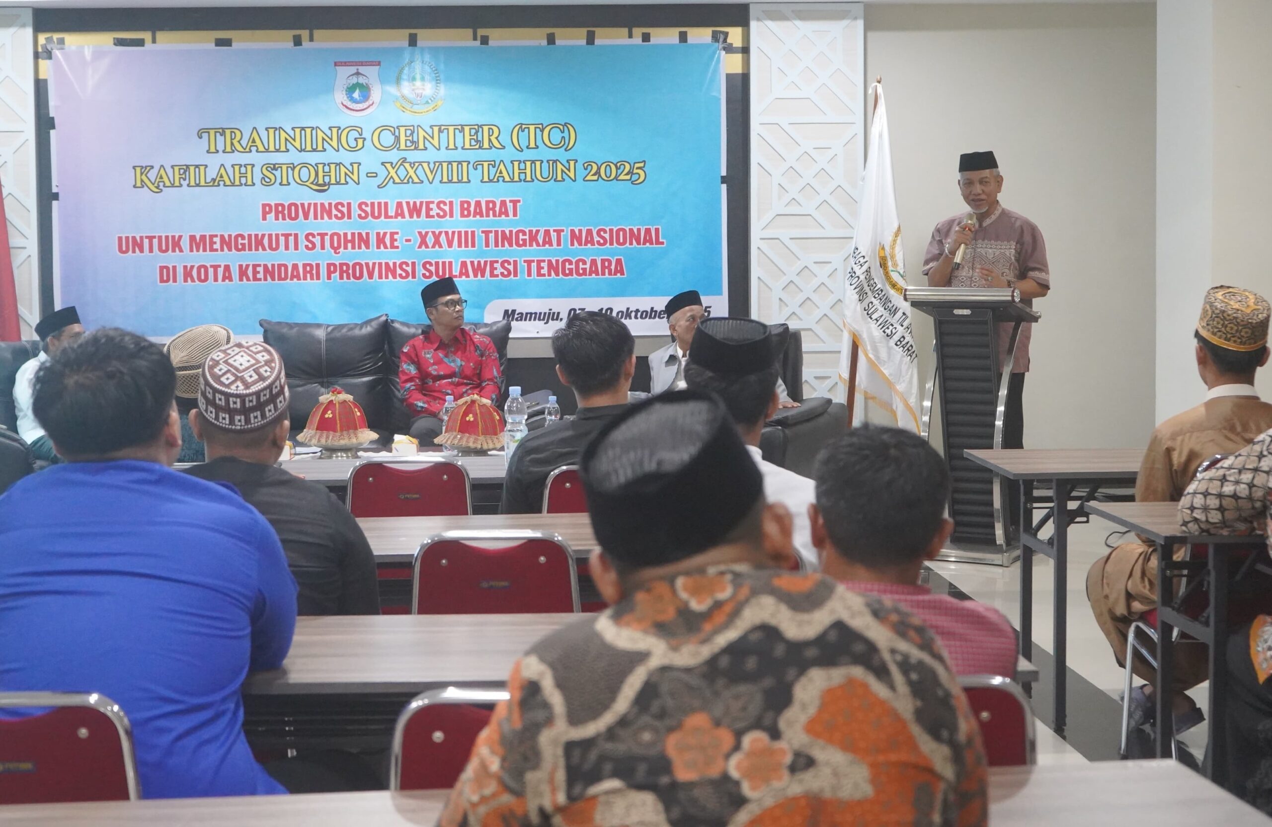 EKSPOSSULBAR.CO.ID, Mamuju — Biro Pemkesra Sulbar resmi menyelenggarakan Training Center (TC) bagi kafilah Sulbar yang akan mengikuti Seleksi Tilawatil Qur’an dan Hadits (STQHN) XXVIII tingkat nasional di Kendari, Sulawesi Tenggara. Kegiatan ini berlangsung di Asrama Haji Mamuju, Selasa (7/10/2025) malam.