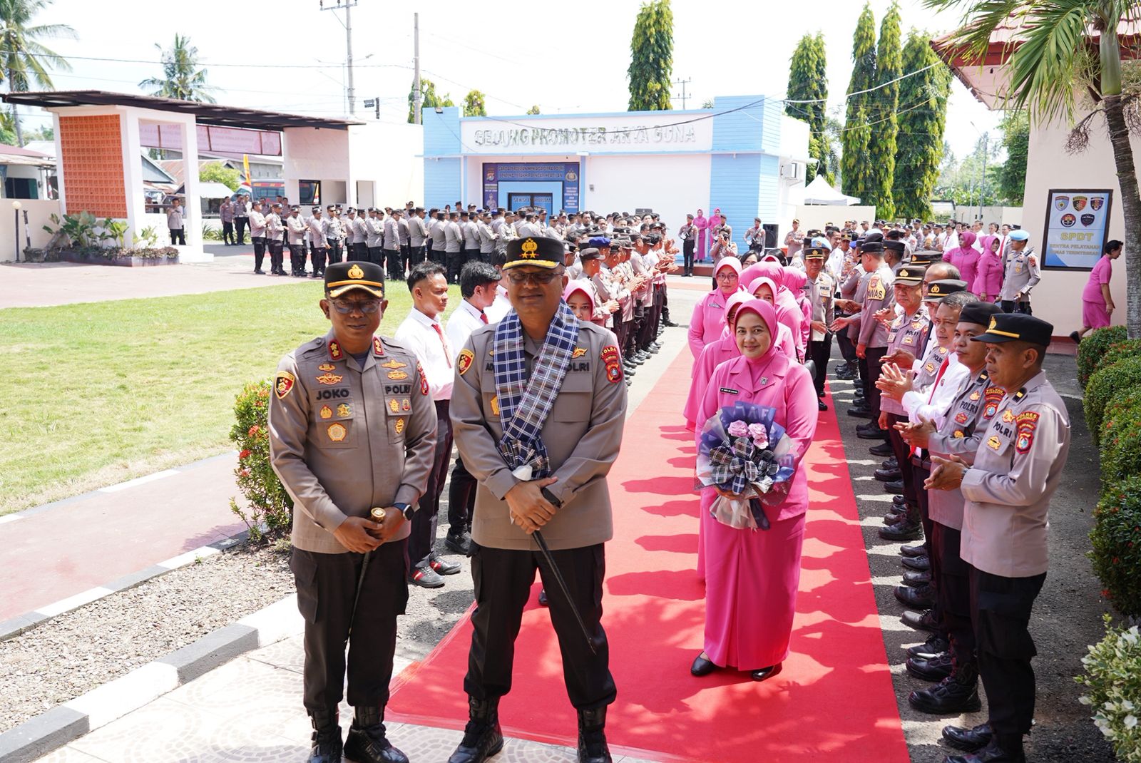 Tiba di Polres Pasangkayu, Kapolda Adi Deriyan disambut dengan pengalungan bunga dan jajar kehormatan, menandai kedatangan beliau sebagai momentum penting bagi seluruh anggota Polres.