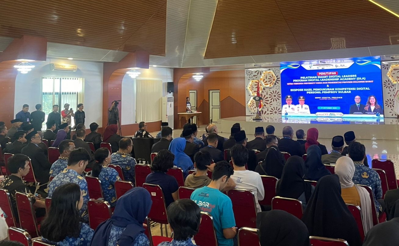EKSPOSSULBAR.CO.ID, Mamuju — Kepala Badan Perencanaan Pembangunan, Riset, dan Inovasi Daerah (Bapperida) Sulawesi Barat, Junda Maulana menghadiri penutupan rangkaian Pelatihan Digital Leadership Academy (DLA) yang digelar oleh Dinas Komunikasi Informatika, Persandian, dan Statistik (Diskominfopers) Sulbar bekerja sama dengan Kementerian Komunikasi dan Digital (Kemenkomdigi) RI serta Tsinghua University, Tiongkok, Jumat (17/10/2025) di Gedung Graha Sandeq, Kompleks Rujab Gubernur Sulbar.