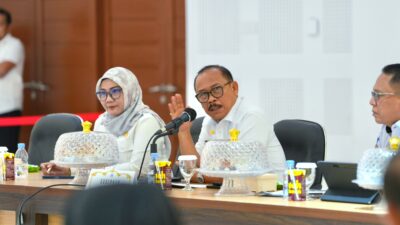 EKSPOSSULBAR.CO.ID, Mamuju — Gubernur Sulbar, Suhardi Duka, memimpin rapat koordinasi (Rakor) terkait optimalisasi pengelolaan keuangan daerah, Rabu (22/10/2025) di Ballroom Andi Depu, Kantor Gubernur Sulbar.