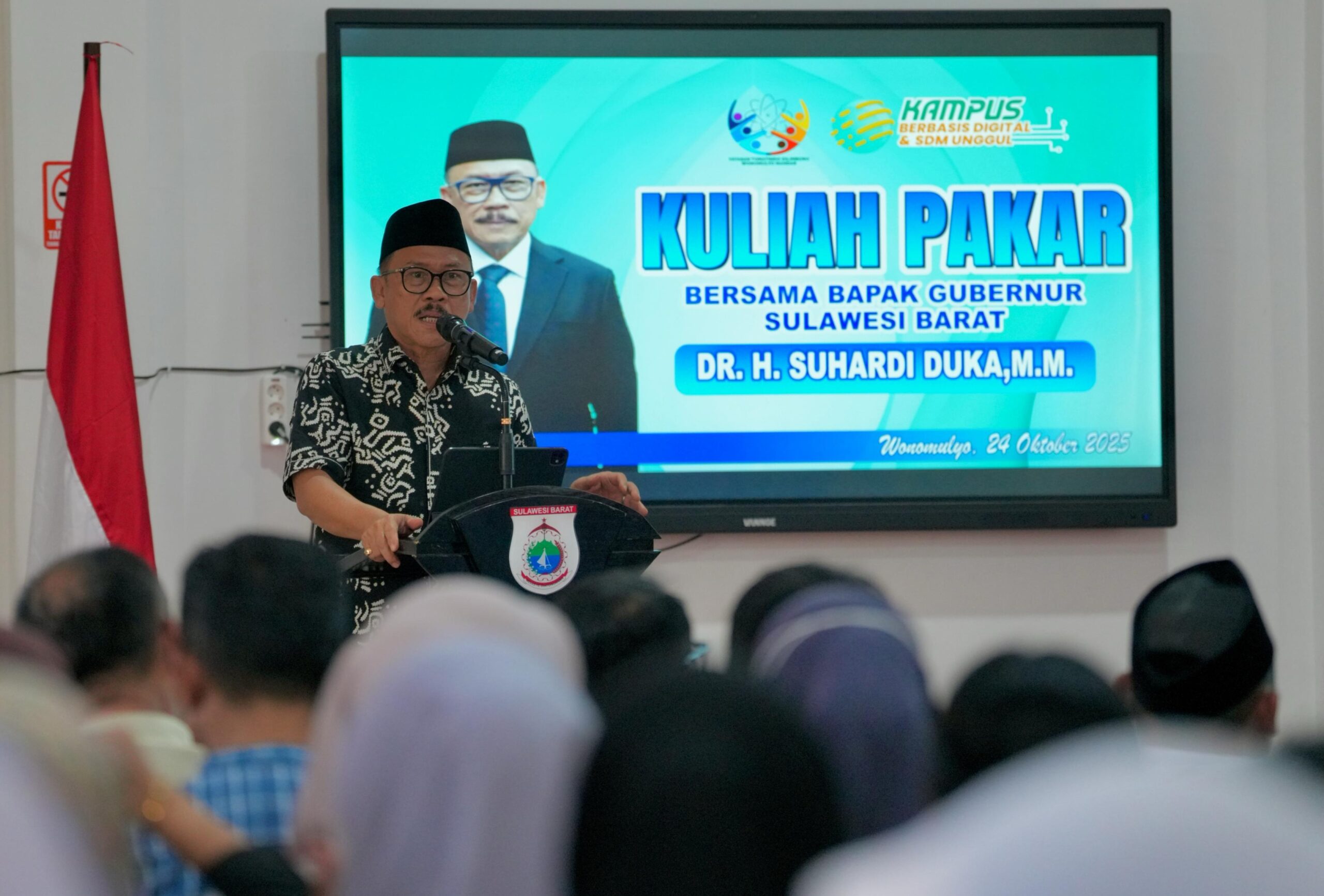 EKSPOSSULBAR.CO.ID, Polman — Gubernur Sulbar, Suhardi Duka (SDK), menegaskan pentingnya sistem pendidikan yang link and match dengan kebutuhan dunia kerja. Hal itu disampaikan dalam kuliah pakar di Kampus Institut Hasan Sulur (IHS) Wonomulyo, Polewali Mandar (Polman), Jumat (24/10/2025).
